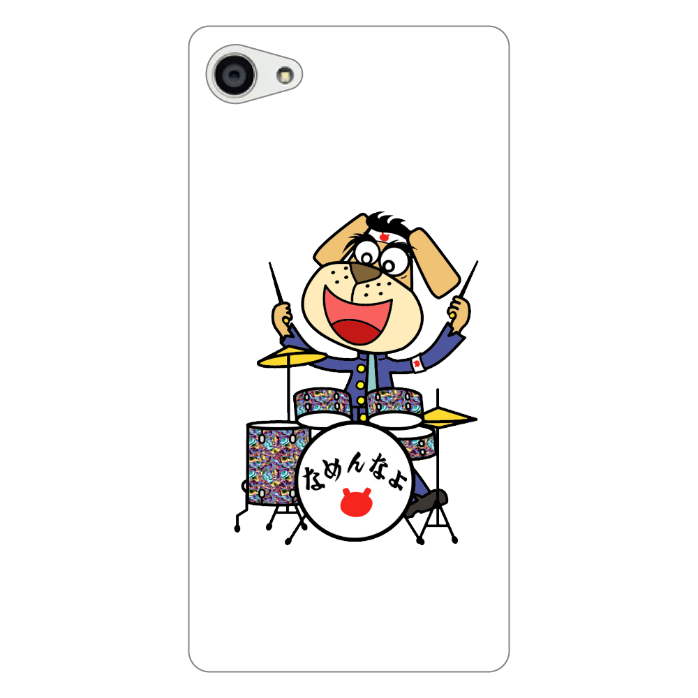 Xperia Z5 Compact(SO-02H) 色:ホワイト 素材:ポリカーボネート樹脂 印刷手法:UV ラインスタンプでもお馴染みの私のオリジナルキャラクターなめ犬が、ドラムを叩いています。