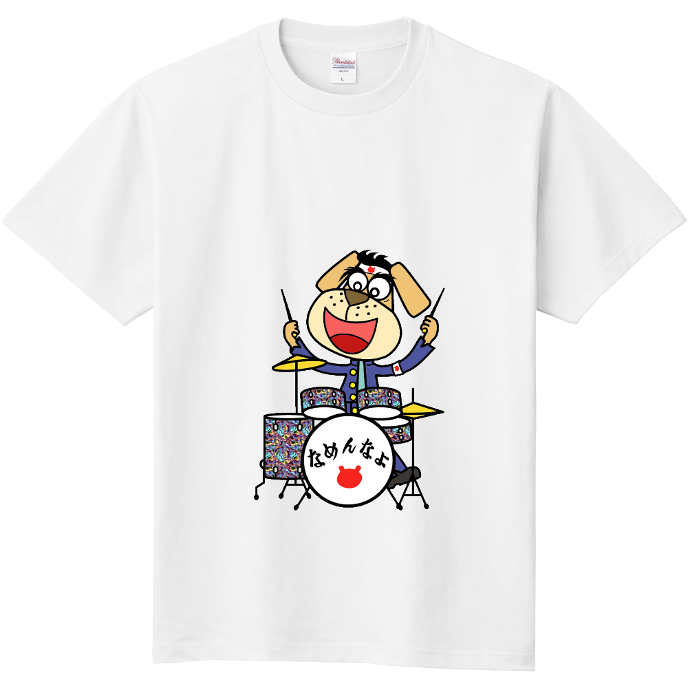 ラインスタンプでもお馴染みの私のオリジナルキャラクターなめ犬が、ドラムを叩いています。