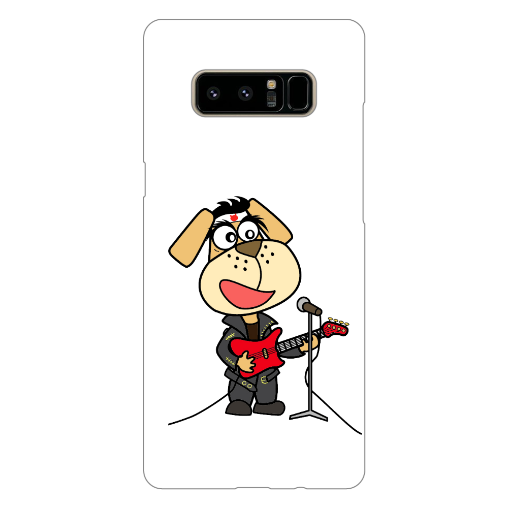 Galaxy Note8 色:ホワイト 素材:ポリカーボネート樹脂 印刷手法:UV ラインスタンプでもお馴染みのキャラクター、なめ犬がエレキギターを弾いています。