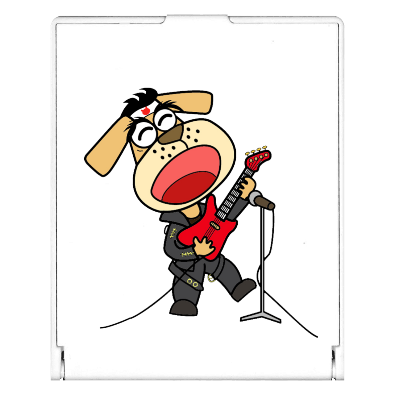 ラインスタンプでもお馴染みの私のオリジナルキャラクターなめ犬が、エレキギターを弾いています。